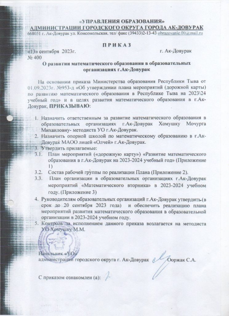 Реализация «Математического вторника» за апрель месяц 2024 года