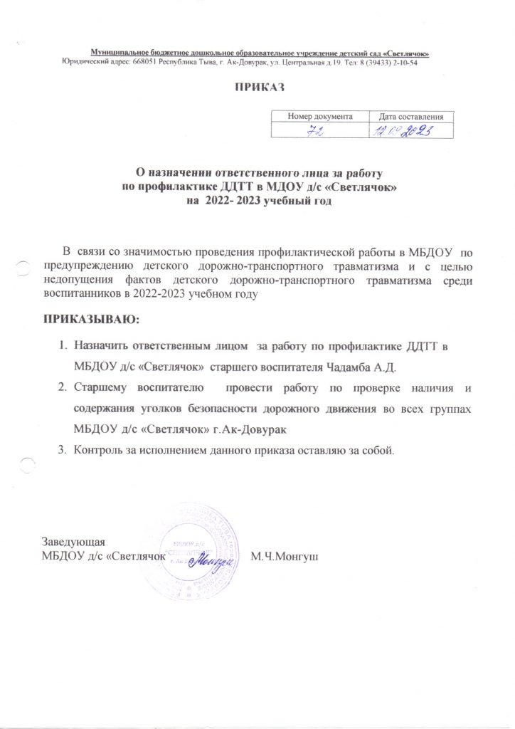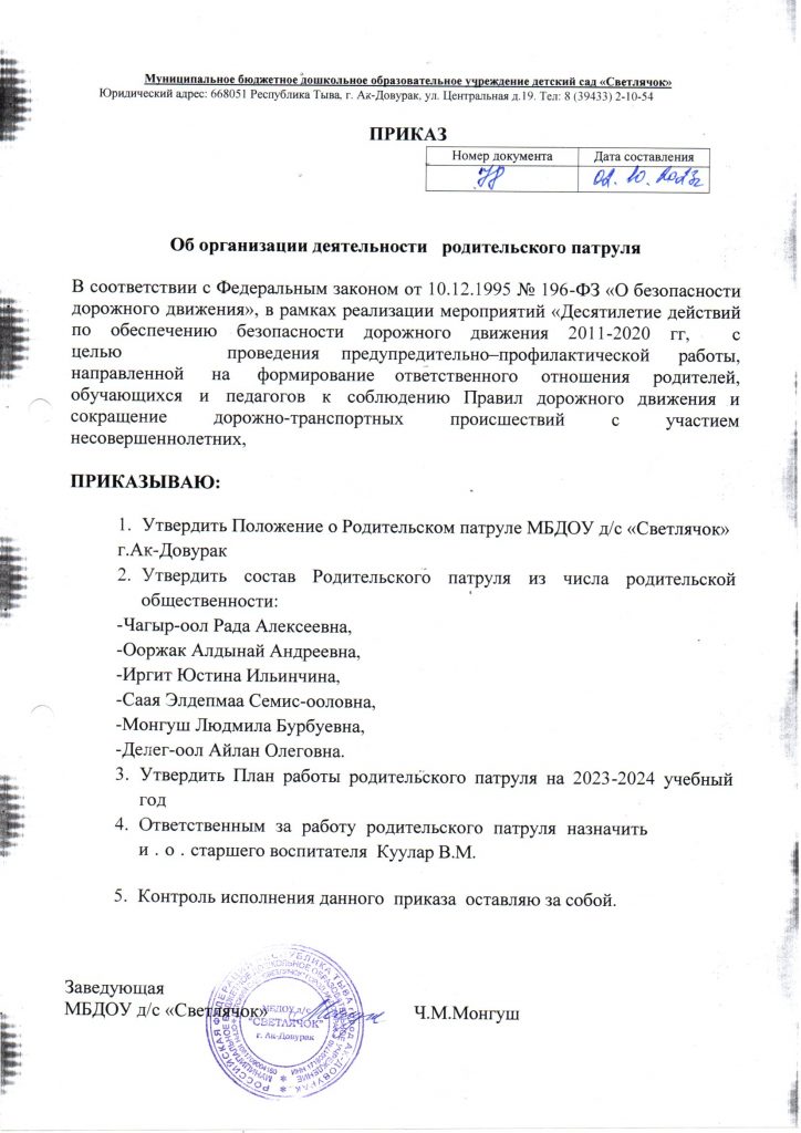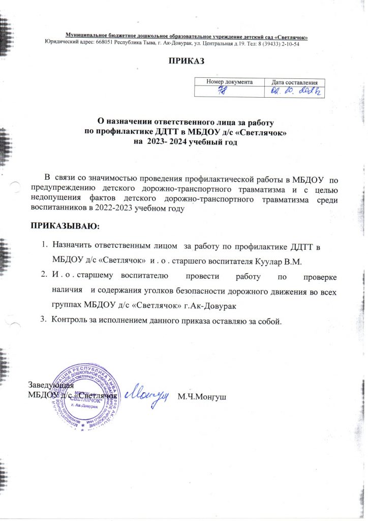 по профилактике детского дорожно-транспортного травматизма в МБДОУ д/с «Светлячок» г.Ак-Довурак