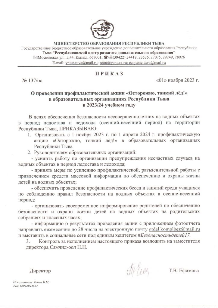 Профилактическая акция «Осторожно, тонкий лед! в 2023-2024 учебном году