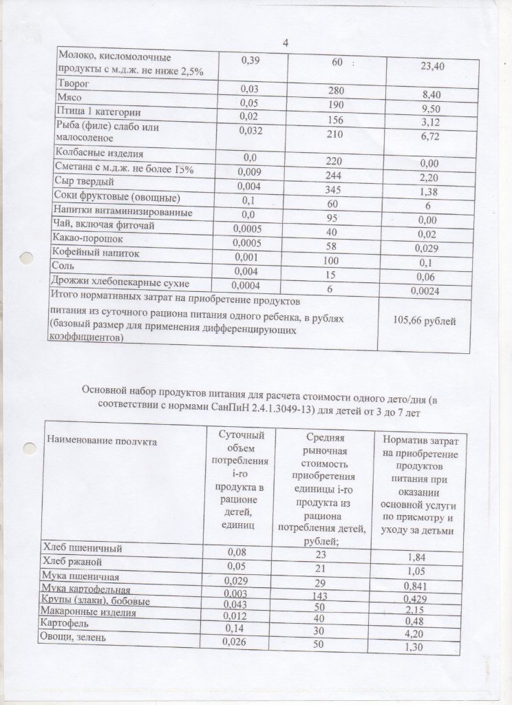 В дошкольной организации предусмотрено ежедневное использование в питании детей следующих продуктов: молока, кисломолочных напитков, сметаны, мяса, птицы или рыбы, картофеля, овощей, фруктов, хлеба, круп, сливочного и растительного масла, сахара, соли.