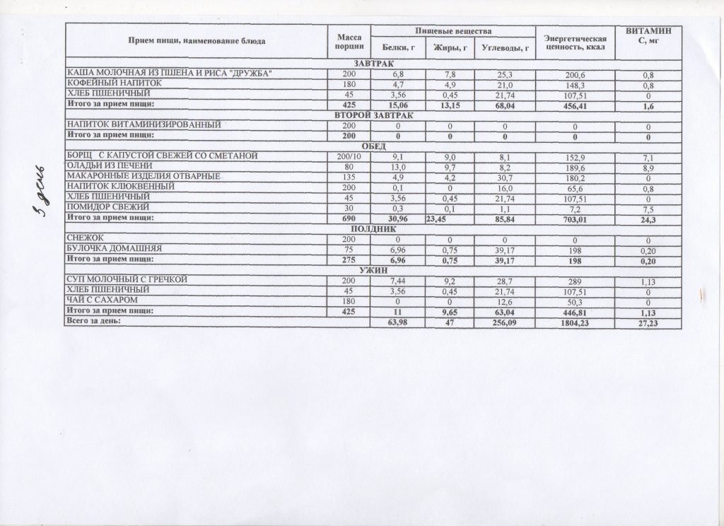 - меню для младшей, средней и старшей группы в возрасте детей от 3 до 7 лет должно включать 1800 Ккал.