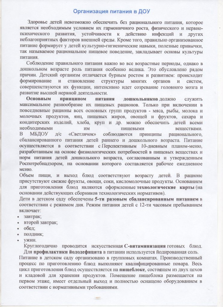 Все меню должно соответствовать нормам СанПиН. А продукты, перед тем как попасть на стол, должны проходить термическую обработку.