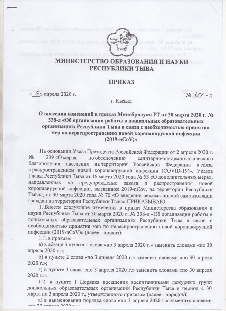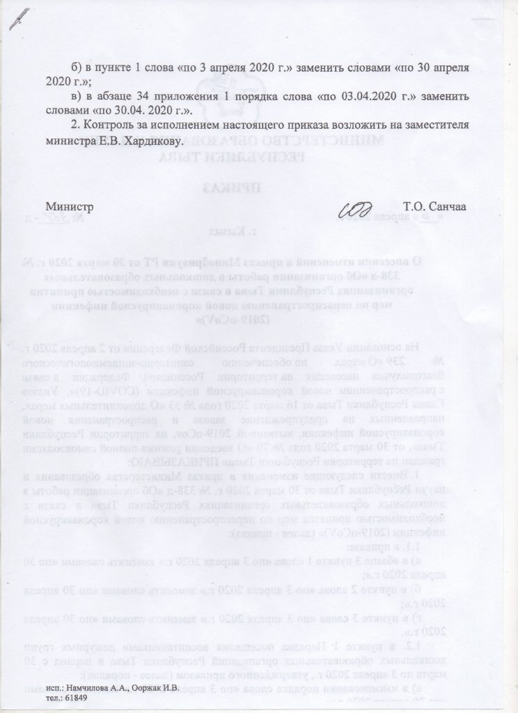 Во исполнения приказа МОН РТ N349-д от 06 апреля 2020 года «Об организации учебного процесса в условиях пандемии.