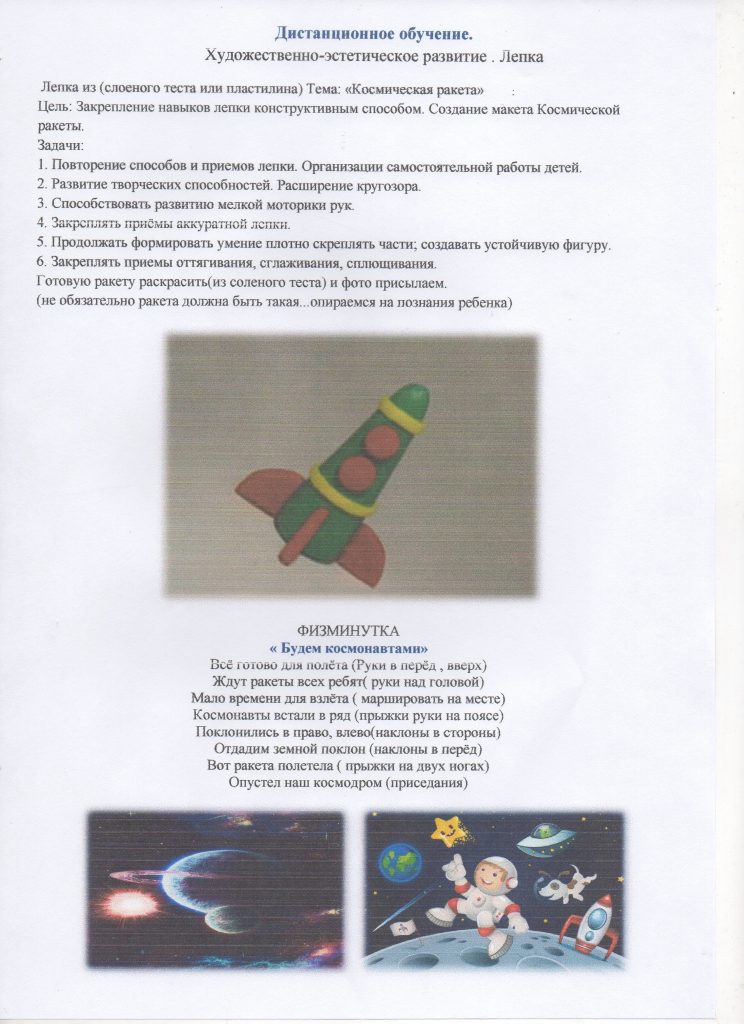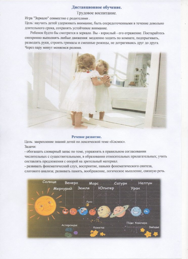 Рекомендации для родителей средней группы № 1 по организации занятий и досуга детей в период самоизоляции