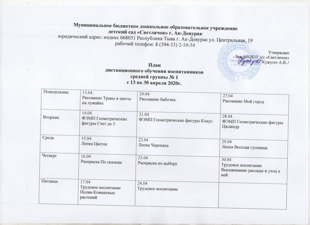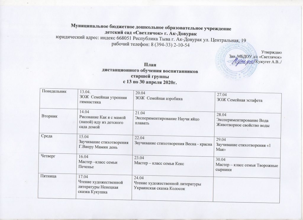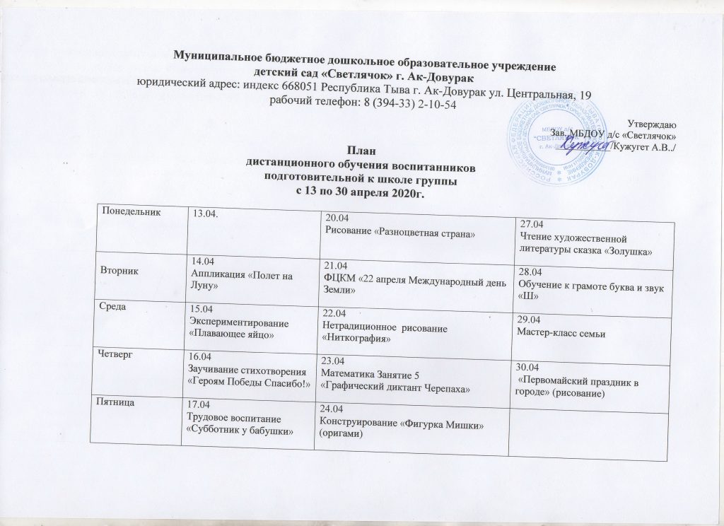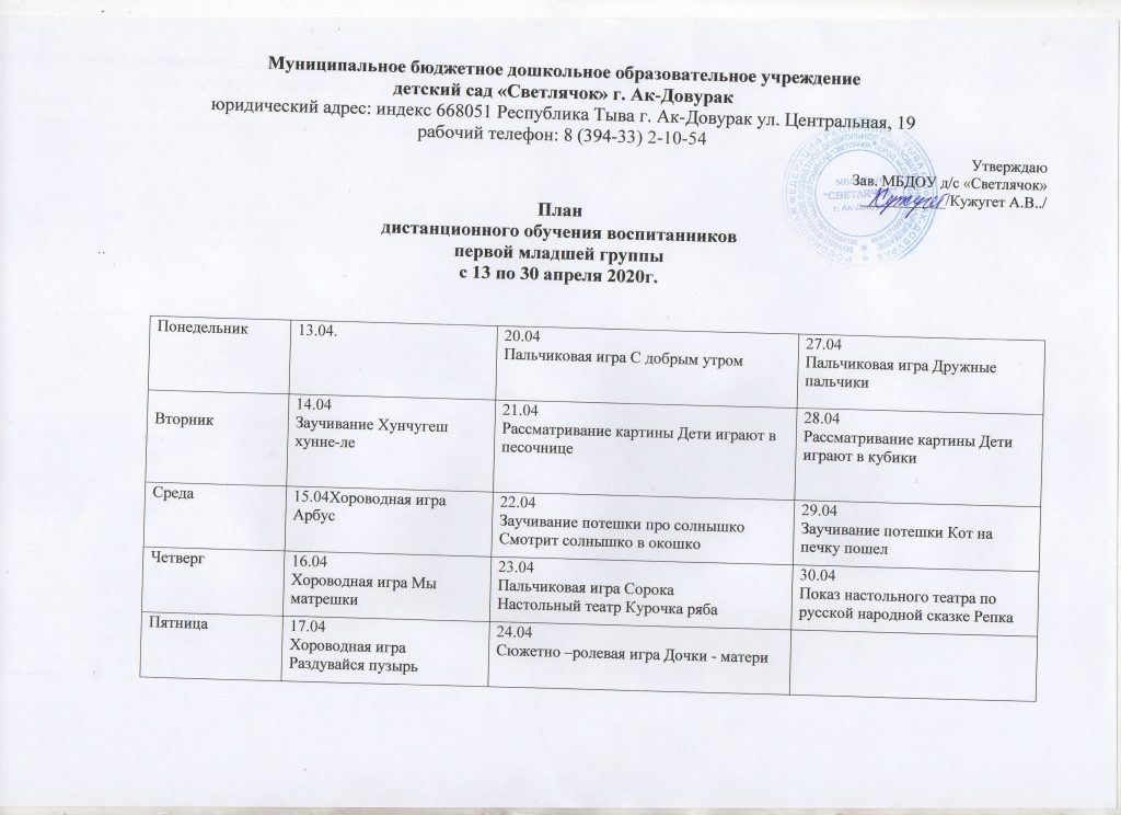 Наш МБДОУ д/с «Светлячок» г.Ак-Довурак запустил дистанционное обучение для воспитанников.